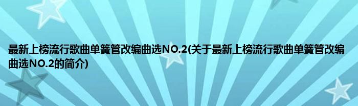 最新上榜流行歌曲单簧管改编曲选NO.2(关于最新上榜流行歌曲单簧管改编曲选NO.2的简介)