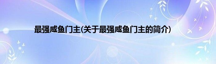 大家好,最强咸鱼门主,关于最强咸鱼门主的简介很多人还不知道,现在让我们一起来看看吧!