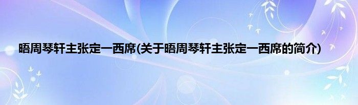 本文关于晤周琴轩主张定一西席的简介就讲解完毕,希望对大家有所帮助。