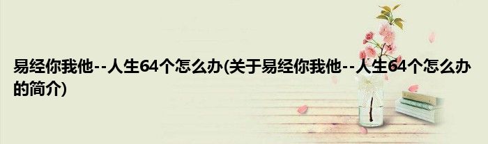 本文关于易经你我他--人生64个怎么办的简介就讲解完毕,希望对大家有所帮助。