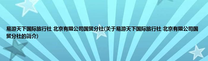 本文关于易游天下国际旅行社 北京有限公司国贸分社的简介就讲解完毕,希望对大家有所帮助。