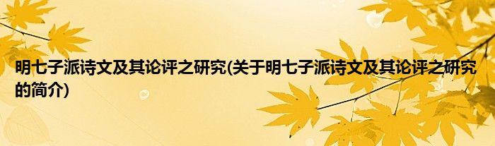本文关于明七子派诗文及其论评之研究的简介就讲解完毕,希望对大家有所帮助。