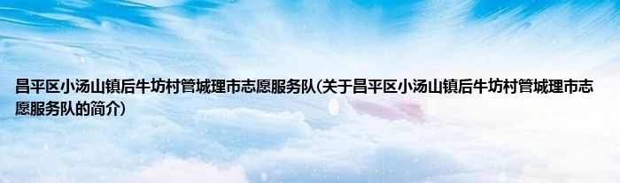大家好,昌平区小汤山镇后牛坊村管城理市志愿服务队,关于昌平区小汤山镇后牛坊村管城理市志愿服务队的简介很多人还不知道,现在让我们一起来看看吧!