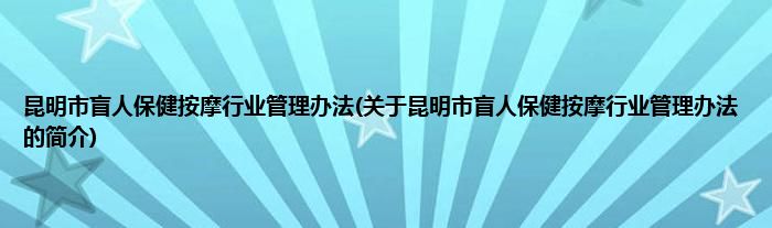 本文关于昆明市盲人保健按摩行业管理办法的简介就讲解完毕,希望对大家有所帮助。
