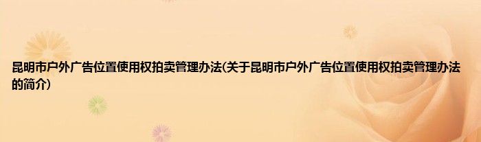 大家好,昆明市户外广告位置使用权拍卖管理办法,关于昆明市户外广告位置使用权拍卖管理办法的简介很多人还不知道,现在让我们一起来看看吧!