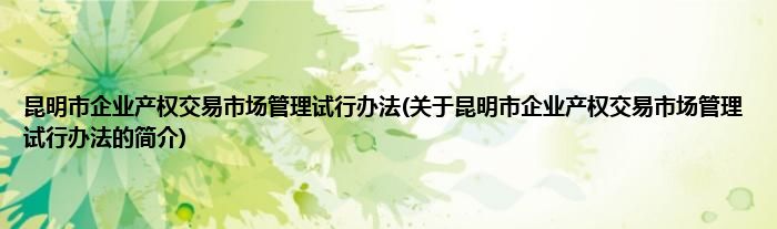 本文关于昆明市企业产权交易市场管理试行办法的简介就讲解完毕,希望对大家有所帮助。