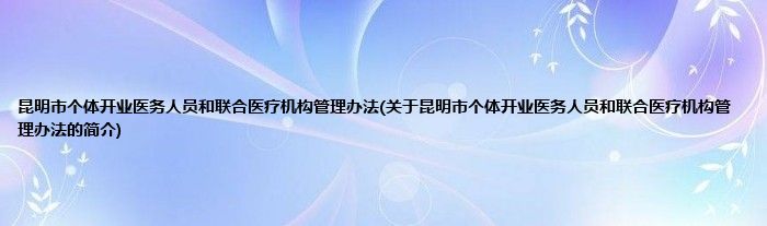 昆明市个体开业医务人员和联合医疗机构管理办法(关于昆明市个体开业医务人员和联合医疗机构管理办法的简介)