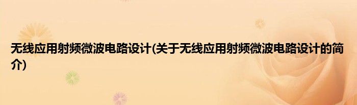 大家好,无线应用射频微波电路设计,关于无线应用射频微波电路设计的简介很多人还不知道,现在让我们一起来看看吧!