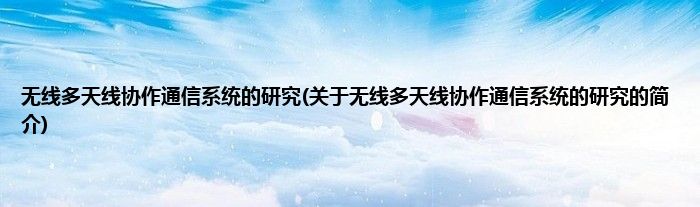 无线多天线协作通信系统的研究(关于无线多天线协作通信系统的研究的简介)