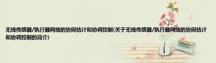 大家好,无线传感器/执行器网络的协同估计和协调控制,关于无线传感器/执行器网络的协同估计和协调控制的简介很多人还不知道,现在让我们一起来看看吧!
