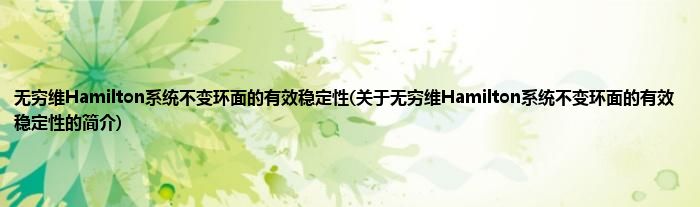 大家好,无穷维Hamilton系统不变环面的有效稳定性,关于无穷维Hamilton系统不变环面的有效稳定性的简介很多人还不知道,现在让我们一起来看看吧!