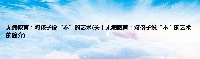 大家好,无痛教育:对孩子说“不”的艺术,关于无痛教育:对孩子说“不”的艺术的简介很多人还不知道,现在让我们一起来看看吧!