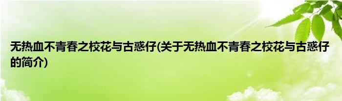 本文关于无热血不青春之校花与古惑仔的简介就讲解完毕,希望对大家有所帮助。