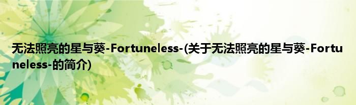 本文关于无法照亮的星与葵-Fortuneless-的简介就讲解完毕,希望对大家有所帮助。