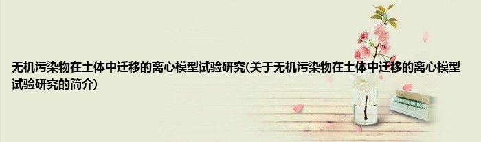 本文关于无机污染物在土体中迁移的离心模型试验研究的简介就讲解完毕,希望对大家有所帮助。