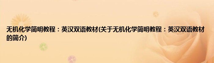 1、 《无机化学简明教程:英汉双语教材》是2006年中国海洋大学出版社出版的图书。