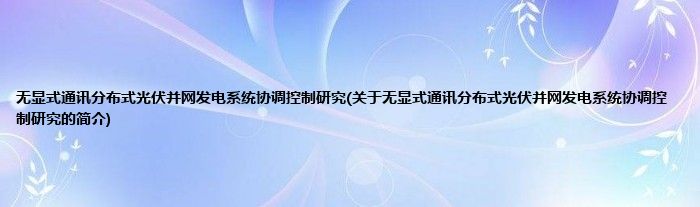 大家好,无显式通讯分布式光伏并网发电系统协调控制研究,关于无显式通讯分布式光伏并网发电系统协调控制研究的简介很多人还不知道,现在让我们一起来看看吧!