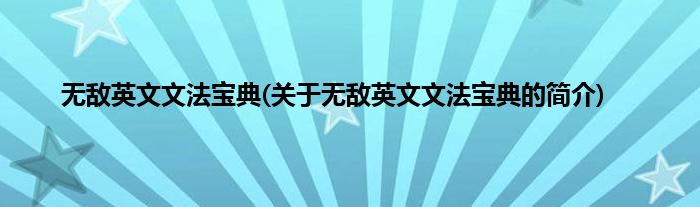 本文关于无敌英文文法宝典的简介就讲解完毕,希望对大家有所帮助。