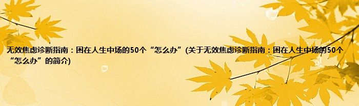 本文关于无效焦虑诊断指南:困在人生中场的50个“怎么办”的简介就讲解完毕,希望对大家有所帮助。