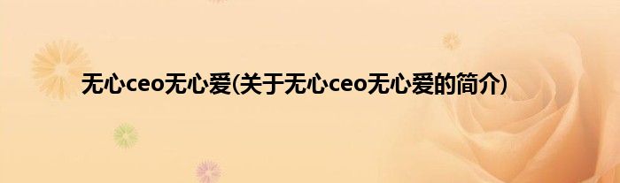 大家好,无心ceo无心爱,关于无心ceo无心爱的简介很多人还不知道,现在让我们一起来看看吧!