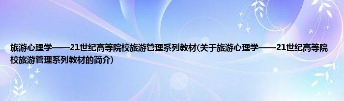 本文关于旅游心理学——21世纪高等院校旅游管理系列教材的简介就讲解完毕,希望对大家有所帮助。