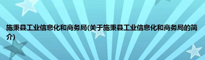 本文关于施秉县工业信息化和商务局的简介就讲解完毕,希望对大家有所帮助。