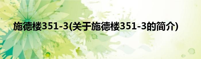 本文关于施德楼351-3的简介就讲解完毕,希望对大家有所帮助。