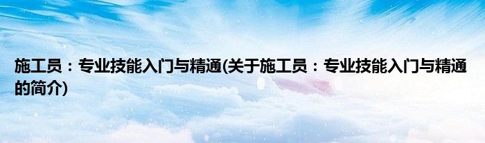 本文关于施工员:专业技能入门与精通的简介就讲解完毕,希望对大家有所帮助。
