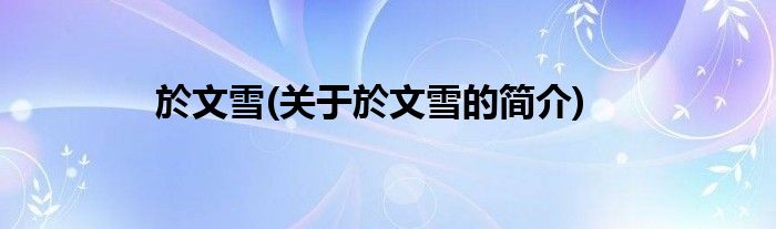 大家好,於文雪,关于於文雪的简介很多人还不知道,现在让我们一起来看看吧!
