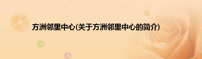 本文关于方洲邻里中心的简介就讲解完毕,希望对大家有所帮助。