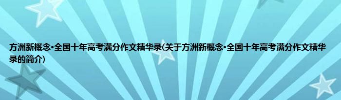 本文关于方洲新概念·全国十年高考满分作文精华录的简介就讲解完毕,希望对大家有所帮助。