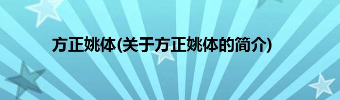 大家好,方正姚体,关于方正姚体的简介很多人还不知道,现在让我们一起来看看吧!