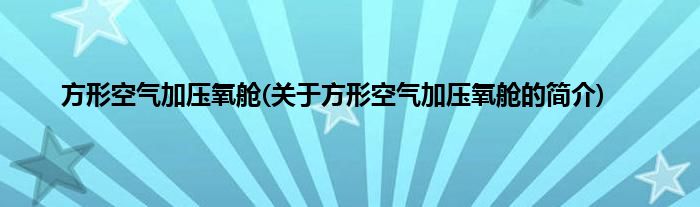 大家好,方形空气加压氧舱,关于方形空气加压氧舱的简介很多人还不知道,现在让我们一起来看看吧!
