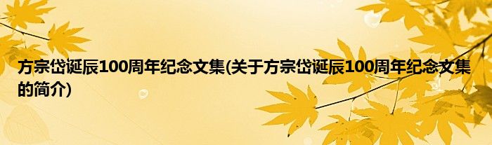 本文关于方宗岱诞辰100周年纪念文集的简介就讲解完毕,希望对大家有所帮助。
