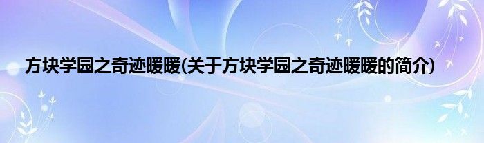 大家好,方块学园之奇迹暖暖,关于方块学园之奇迹暖暖的简介很多人还不知道,现在让我们一起来看看吧!