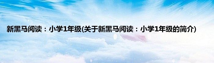 本文关于新黑马阅读:小学1年级的简介就讲解完毕,希望对大家有所帮助。
