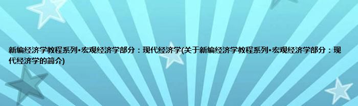 大家好,新编经济学教程系列·宏观经济学部分:现代经济学,关于新编经济学教程系列·宏观经济学部分:现代经济学的简介很多人还不知道,现在让我们一起来看看吧!