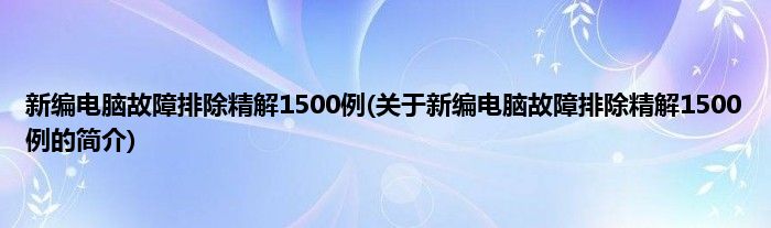 本文关于新编电脑故障排除精解1500例的简介就讲解完毕,希望对大家有所帮助。