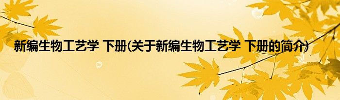 本文关于新编生物工艺学 下册的简介就讲解完毕,希望对大家有所帮助。