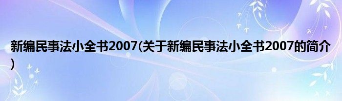 本文关于新编民事法小全书2007的简介就讲解完毕,希望对大家有所帮助。