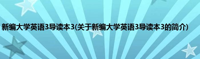 本文关于新编大学英语3导读本3的简介就讲解完毕,希望对大家有所帮助。
