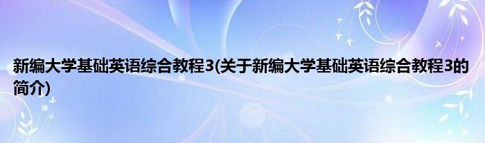 本文关于新编大学基础英语综合教程3的简介就讲解完毕,希望对大家有所帮助。