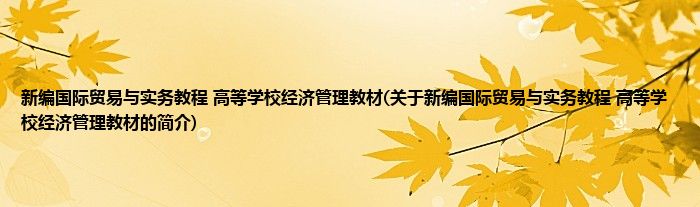 本文关于新编国际贸易与实务教程 高等学校经济管理教材的简介就讲解完毕,希望对大家有所帮助。