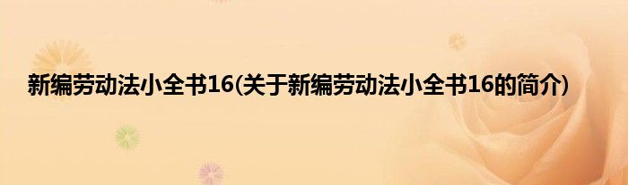 本文关于新编劳动法小全书16的简介就讲解完毕,希望对大家有所帮助。