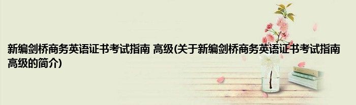 1、 《新编剑桥商务英语证书考试指南(高级)》是2019年经济科学出版社出版的图书。