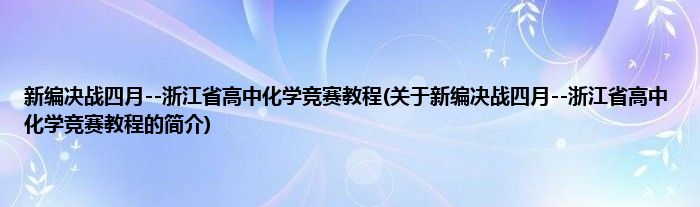 本文关于新编决战四月--浙江省高中化学竞赛教程的简介就讲解完毕,希望对大家有所帮助。