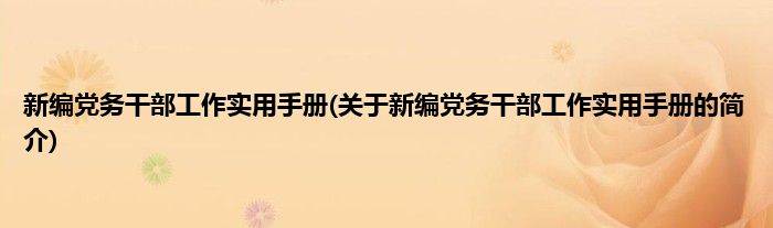 大家好,新编党务干部工作实用手册,关于新编党务干部工作实用手册的简介很多人还不知道,现在让我们一起来看看吧!