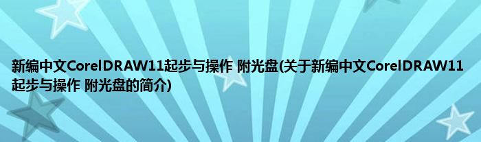1、 《新编中文CorelDRAW11起步与操作(附光盘)》是2004年出版的图书。