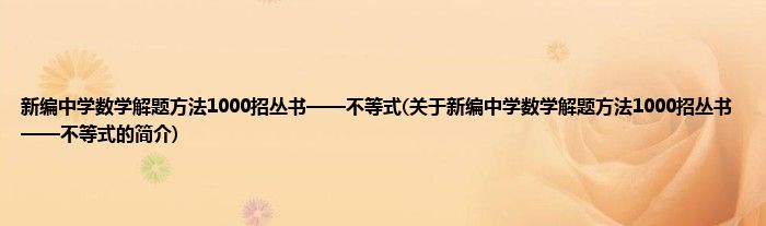 本文关于新编中学数学解题方法1000招丛书——不等式的简介就讲解完毕,希望对大家有所帮助。