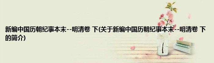 本文关于新编中国历朝纪事本末--明清卷 下的简介就讲解完毕,希望对大家有所帮助。